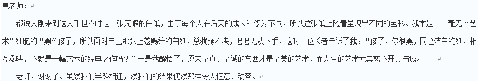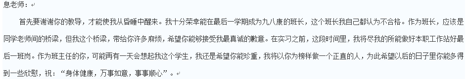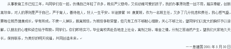 学生在毕业季感谢息老师的付出,一名同学写着: