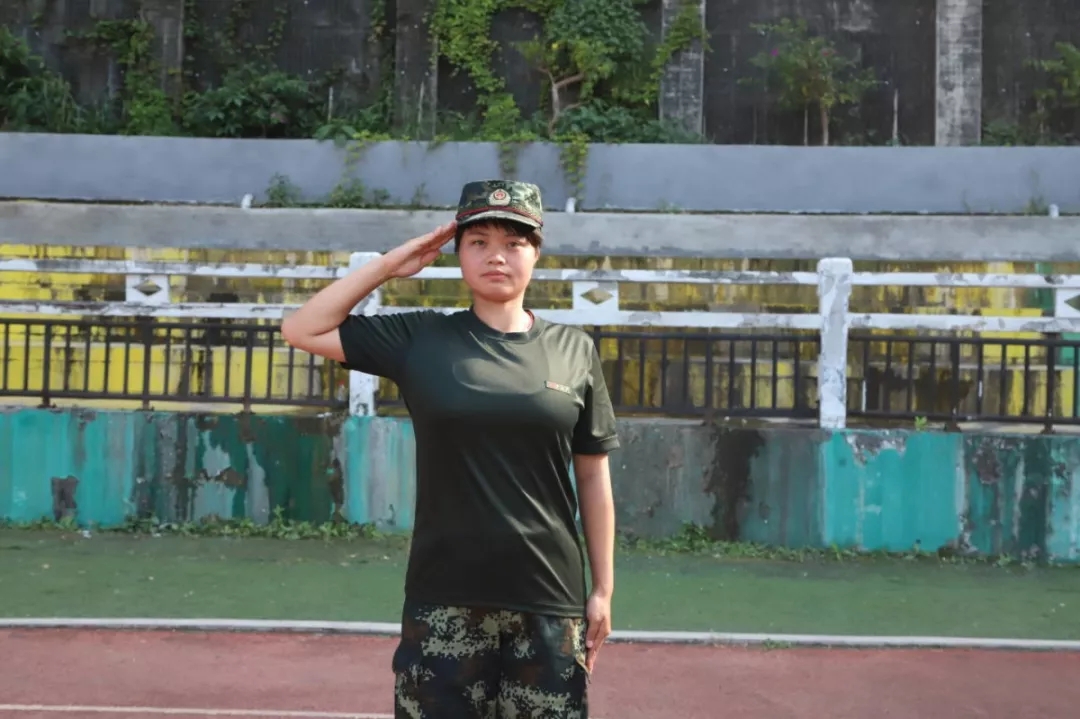 2015年9月入伍,2017年9月退役回到学校。曾服役于武警青海总队,专业为话务员,在服役期间学习了很多。2017年,因表现优异,被评为“优秀义务兵”,记嘉奖一次。回学校已经有两年了,但是退伍不褪色,她很荣幸参与了2019年学校开展的新生军训任务,在这短短的11天,她仿佛看到了曾经的自己,同时我也看到了同学们这段时间的坚持与努力。带军训期间,现役的班长教官们也特别照顾他们,互相配合,找到了在军营生活的感觉。11天,很短,但军训很成功,军训任务圆满结束。在最后,不得不与教官、同学们告别。