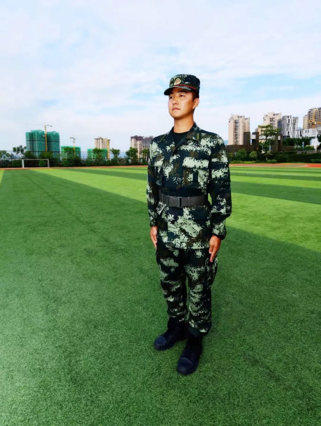 一身男儿血,满腔报国志;一身迷彩装,铮铮好儿郎。巍巍军风,铸钢铁身躯;