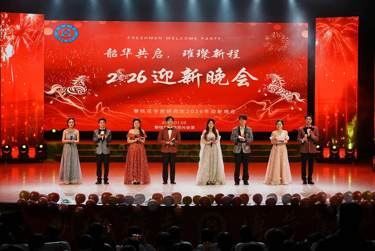 1月5日晚,我校在阳光会堂举办“韶华共启·璀璨新程”首届研究生迎新晚会。校党委副书记、校长李兴贵出席晚会并致辞。晚会赞助方中国移动通信集团四川有限公司攀枝花分公司党委书记、总经理廖露华,党委委员、副总经理王志强,全体研究生及培养学院相关负责人、师生代表300余人参加晚会。