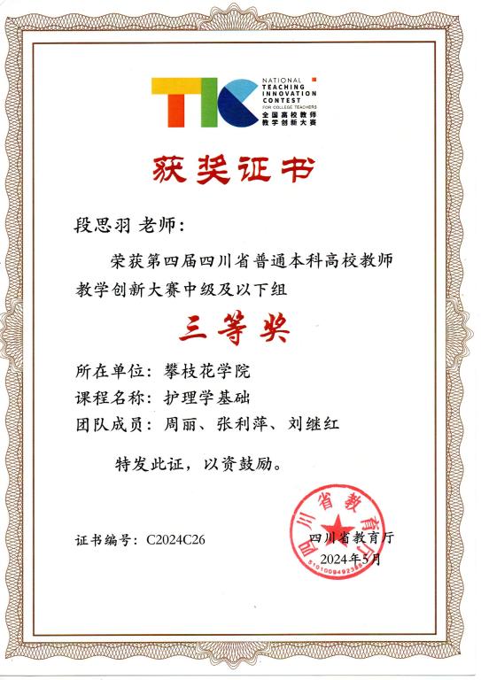 图3 荣获第四届四川省普通本科高校教师教学创新大赛三等奖